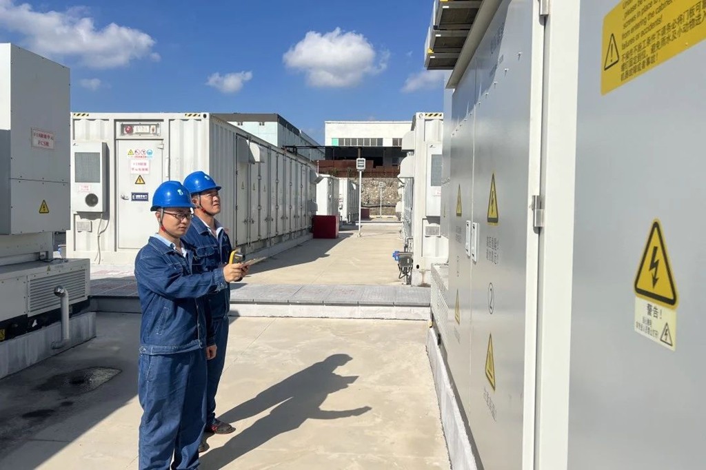 福山儲(chǔ)能電站員工正在對(duì)站內(nèi)PCS艙進(jìn)行檢查。